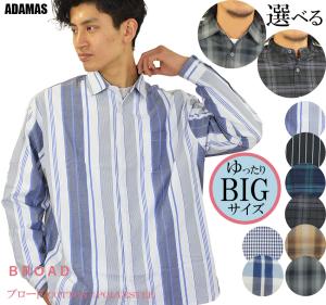 オーバーシャツ メンズ ゆったり ワイドシャツ ビッグシャツ 長袖 シャツ レギュラーカラー バンドパラー 襟なしシャツ ストライプ チェ