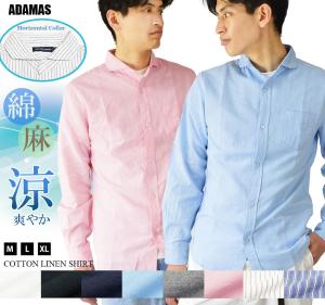 長袖シャツ メンズ カジュアルシャツ 白シャツ 薄手 綿 麻 ホリゾンタルカラー ワイシャツ Yシャツ 春夏 送料無料 春物 夏物 春服 夏服