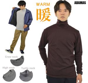 ヒートインナー 暖 Tシャツ メンズ タートルネック ハイネック クルーネック モックネック 長袖 無地 ロンT ストレッチ あったか 保温 ウ