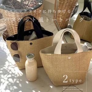 カゴバッグ レディース ピクニック バスケット風 ミニトートバッグ ブラック ホワイト ランチバッグ おしゃれ 人気 かわいい 韓国ファッ