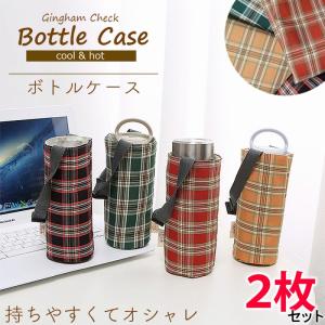 ボトルケース 2個セット ペットボトル 水筒 かわいい ギンガムチェック 持ち運び 通勤 通学 スポーツ ストラップ おしゃれ ドリンクホル