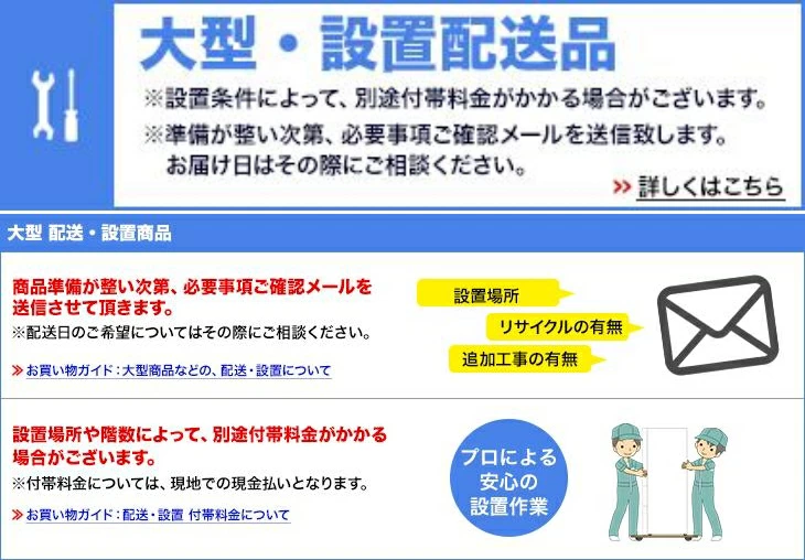 【大型商品などの、配送・設置について】配送設置品をご購入頂くと、