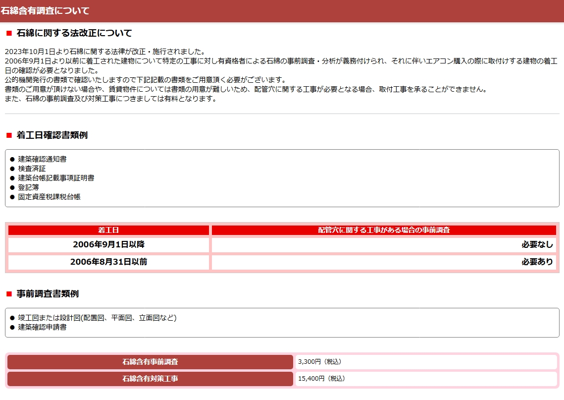 ※ 商品の購入が伴わない、設置工事のみは承っておりません。