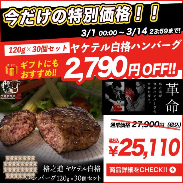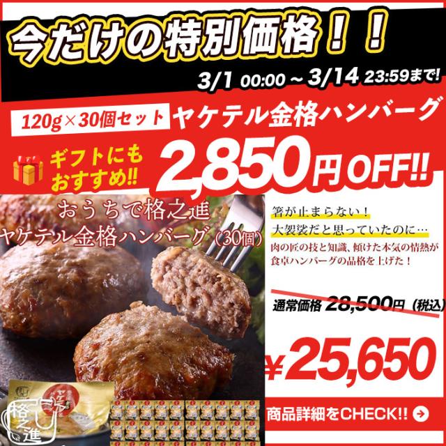 ハンバーグ 内祝い 国産 ギフト 冷凍 送料無料 格之進 金格ハンバーグ 120g 30個セット 国産牛 白金豚 御礼 <六本木/格之進>