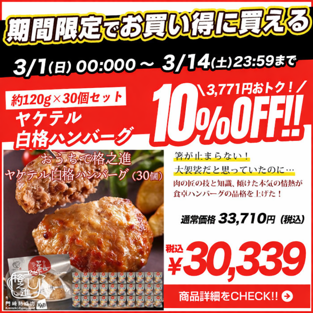 ハンバーグ 温めるだけ 冷凍 送料無料 格之進 ヤケテル白格ハンバーグ 約120g×10個セット 黒毛和牛 白金豚 御礼 <六本木/格之進>