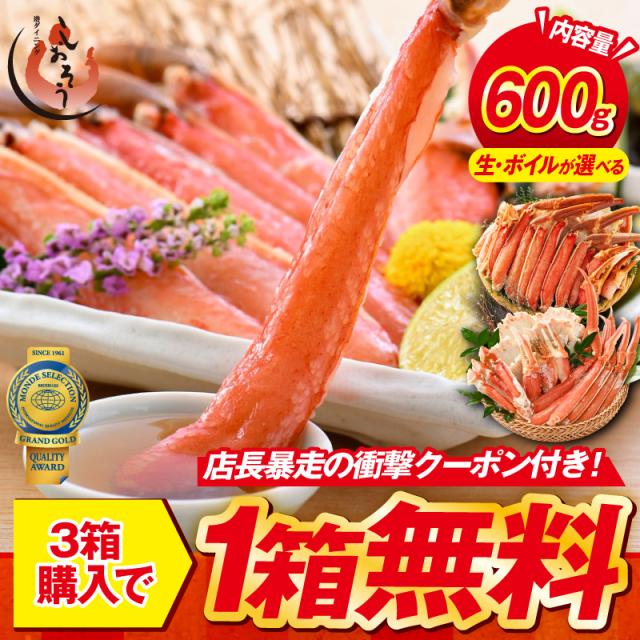 3箱で1箱無料!かに カニ 蟹 ズワイガニ ポーション お刺身OK 生 カット済み 600g (総重量750g) ずわい蟹 鍋 ハーフポーション 贈り物
