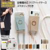 スマホ【クリア×スマホリング付きカード入れ ミラー ロングストラップ】スマホショルダー ニュアンスカラー メール便送料無料 受注生産