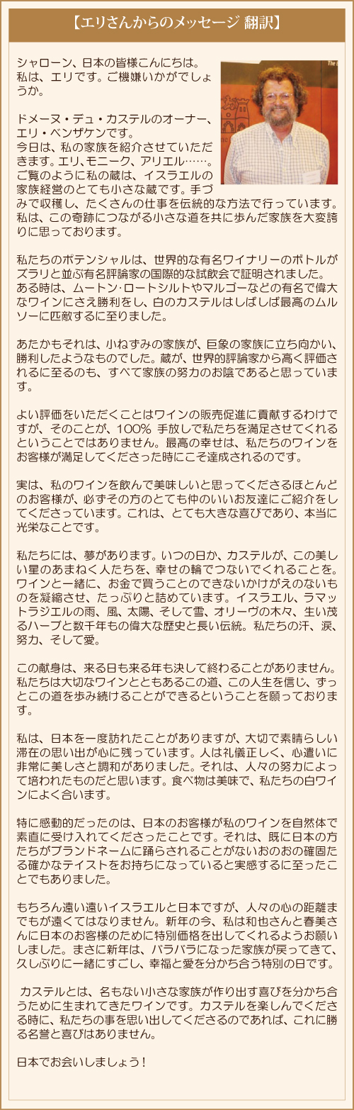 ドメーヌ・デュ・カステル・メッセージ