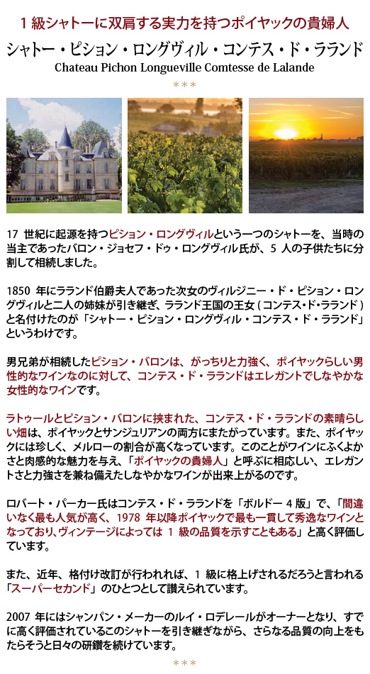 2017 シャトー ピション ロングヴィル コンテス ド ラランド 750ml ポイヤック第2級 ボルドー 赤ワイン コク辛口 ^ABPC0117^