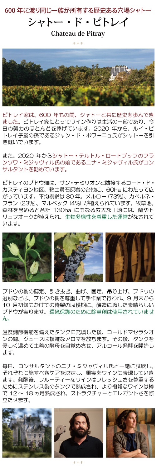 2020 シャトー ド ピトレイ マグナム 1500ml カスティヨン/コート ド ボルドー 赤ワイン コク辛口 ^ANPY21MA^