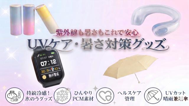 | 氷のう・PCM・ヘルスウォッチ・日傘など、 今すぐ使える暑さ対策アイテムが揃う! |