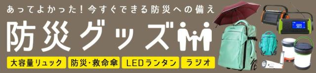 大容量リュック、救命傘、LEDランタン、防災ラジオなど多機能なアイテムをそろえています。