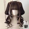 フルウィッグ ロング ウェーブ インナーカラー ブラウン ベージュ リボン ツインテール アレンジ済み パッツン前髪 ネット付き 自然 姫系