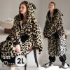 ナイトガウン ズボン付き パジャマセット ヒョウ柄 犬耳フード付き ふわふわボアロングコート ルームウェア フード付き ポケット付き ブ