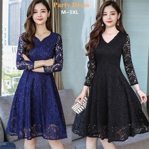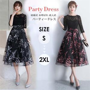 ドレス パーティードレス ショートドレス レース 上品 Aライン ステージドレス 結婚式ドレス ワンピース ミモレ丈 お呼ばれドレス 二次