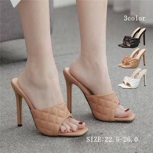 ミュール サンダル スクエアトゥ 美脚 ハイヒール シューズ オープントゥ 靴 ピンヒール レディース 女性 大人かわいい 夏 オシャレ ブ
