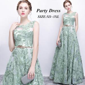 ドレス パーティードレス 大人 結婚式 発表会 ロングドレス 演奏会 グリーンドレス 緑 ノースリーブ パーティー レディース ロング丈 ベ