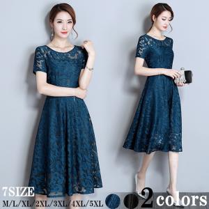 ドレス ロングドレス パーティードレス 結婚式 母親 総レース ワンピース フォーマル 着痩せ フォーマル 半袖 大きいサイズ タイト 透け