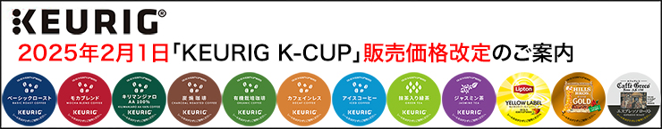 ![]() 「KEURIG K-Cup」2025年2月1日販売価格改定のご案内 平素は「D-Park」をご利用頂きまして、誠に有り難うございます。 この度「KEURIG K-Cup」製品につきまして、昨今のコーヒー市場にみられる原料高の影響をはじめ、エネルギー価格の上昇による物流費の高騰や人件費の上昇を受け、メーカーにおいて価格改定が実施される事になり、弊社におきましても、2025年2月1日より「KEURIG K-Cup」の販売価格を改定させていただく事といたしました。 「KEURIG K-Cup」のセット商品につきましても価格の見直しをさせて頂きます。 度重なる改定で大変恐れ入りますが、これからもお客様にご満足いただける商品とサービスを提供できるよう、より一層の努力をして参ります。何卒ご理解をいただき、これからも変わらないご愛顧を賜りますようお願い申し上げます。 「KEURIG K-Cup」2025年2月1日からの当店販売価格(価格は税込表記)