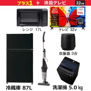 新生活家電セット5点 ブラック 黒 【プラス 32V型液晶テレビ付】 冷蔵庫 / 洗濯機 / 液晶テレビ / 電子レンジ / 掃除機 / 炊飯器[一