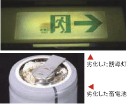 表示板は設置時と比較すると汚れて視認性が低下することが有ります。また、器具内のブロックが劣化し、充電不良や故障が起こる可能性があります。