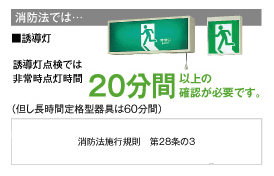 これまでの長時間誘導灯の点灯時間は30分以上でしたが、今回の改正で点灯時間は2倍の60分なりましたので、内蔵バッテリータイプのものは基本的に全て 取り替えが必要です。