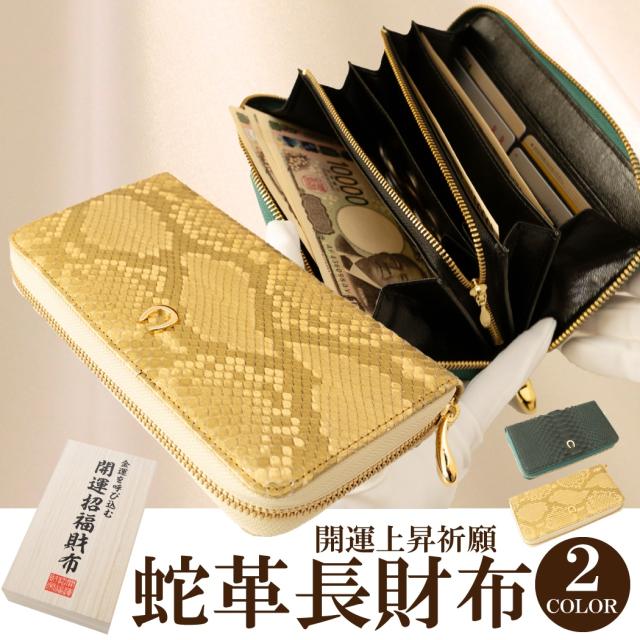 金運 財布 金運財布 ヘビ 革 財布 ゴールド 緑 グリーン 蛇皮財布 蛇革 開運財布 メンズ レディース 風水 長財布 金 運 アップ 開運 金運