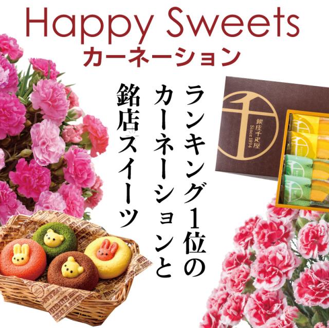 母の日 花とセット ひととえキュートセレクションと カーネーション さくらもなか 花とスイーツ プレゼント お菓子付き 60代 70代 80代