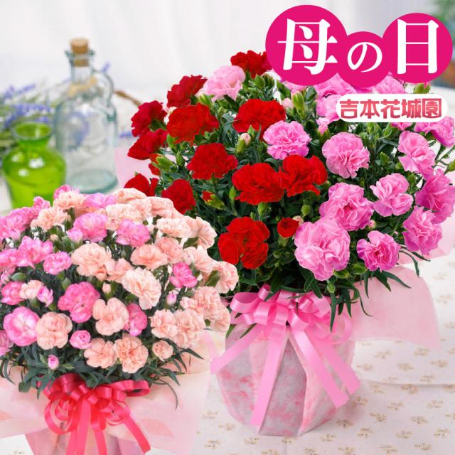 母の日 早割 プレゼント 2026 花とセット ギフト カーネーション 赤 レッド 鉢植え 選べる特典付き パキラ 抹茶どら焼き ブルーベリーマ