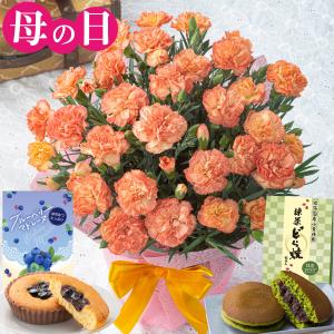 母の日 早割 プレゼント 2026 花とセット ギフト カーネーション オレンジドレス 鉢植え 選べる特典付き パキラ 抹茶どら焼き ブルーベリ