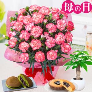 母の日 早割 プレゼント 2026 花とセット ギフト カーネーション テキーラ 鉢植え 選べる特典付き パキラ 抹茶どら焼き ブルーベリーマド