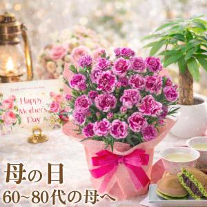母の日 早割 プレゼント 2026 花とセット ギフト カーネーション ファンシーバイオレット 鉢植え 選べる特典付き パキラ 抹茶どら焼き ブ