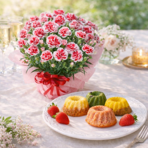 母の日 花とセット 洋菓子 果実のミニョン・ド・クグロフと カーネーション いちごホイップ 花とスイーツ プレゼント お菓子付き 60代 70