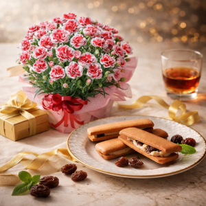 母の日 花とセット ホテルオークラ・レーズンサンドと カーネーション いちごホイップ 花とスイーツ プレゼント お菓子付き 60代 70代 80