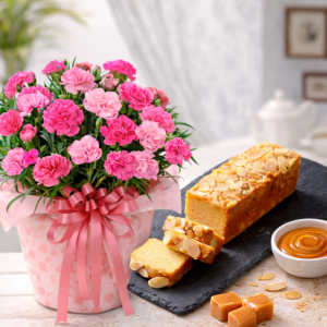 母の日 花とセット 祇園きたざとのキャラメルケーキと カーネーション さくらもなか 花とスイーツ プレゼント お菓子付き 60代 70代 80代