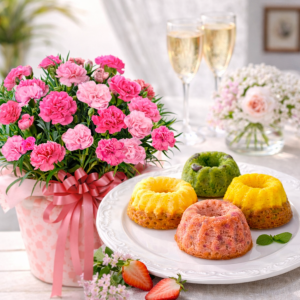 母の日 花とセット 洋菓子 果実のミニョン・ド・クグロフと カーネーション さくらもなか 花とスイーツ プレゼント お菓子付き 60代 70代