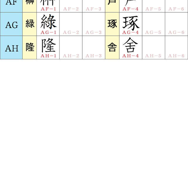表に無い文字も対応させて頂きますので、説明書きをお書き添え頂くか、説明が難しい場合は、FAXにて文字をお知らせ下さい。
