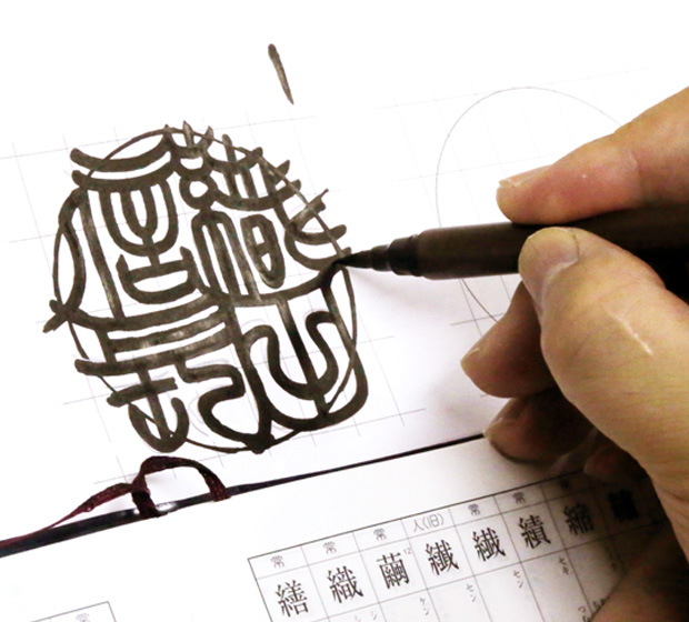 京印章制作士・井ノ口清一が、ご注文ごとに一点ずつ手書きで印影を書きあげております。