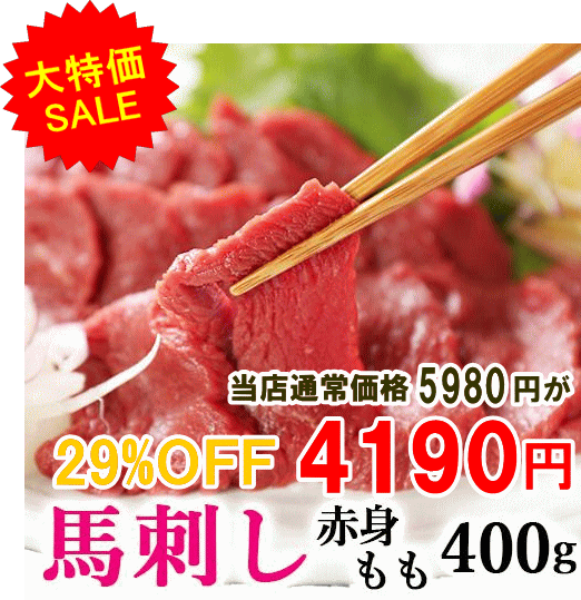 馬刺し 赤身 モモ 400g 8人前 【味が濃く少し歯ごたえがあります。薄めのスライスがおススメです】 もも 送料無料 馬肉 馬刺 帰省土産 お