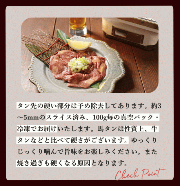 馬タンスライス 加熱用100g おつまみ 酒の肴 馬たん 馬肉 タン 馬タン 焼肉 BBQ タン塩 馬タンは性質上、牛タンなどと比べて硬さがござい
