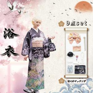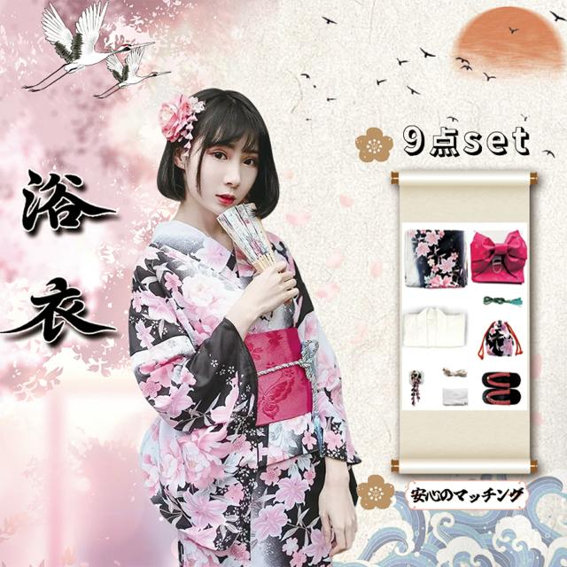 桜 女性用 yukata ゆかた ユカタ 帯 兵児帯 下駄 簡単 簡易 大人 20代 30代 40代 50代 和装 正装 着物 160サイズ 折襟 デザイン 柄物 1