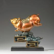 彩銅仕上げ 祥雲 猪 置物 銅工芸品 干支飾り 玄関 リビング 酒棚 インテリア 装飾品 家庭運 招福 彩色銅製 オブジェ クリスマス 御歳暮