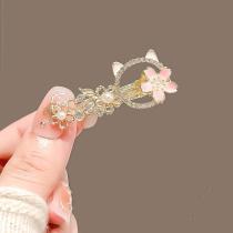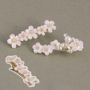 サクラ ネコ ヘアクリップ ダッククリップ 可愛い 甘い サイドクリップ 前髪 花 お花見 ピクニック フェアリー レディース 髪飾り ヘアア