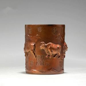 五福牛 ペン立て 黄銅 置物 牛 彫刻 工芸品 書斎 オフィス デスク 飾り 開運 勉学 成功 商売繁盛 縁起物 ギフト 贈り物 同僚 友人 卒業祝
