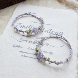 金属アレルギー対応 パワーストーン ブレスレット 春夏 肌映え 春コーデ パープル 合成原石 網袋編み ハンドメイド オリジナルデザイン