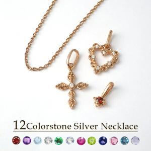 選べる 誕生石 天然石 7way オープンハート クロス レイヤード ネックレス シルバー925 ピンクゴールド ハート 十字架 華奢 一粒 小さめ