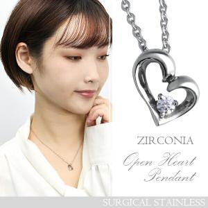 ネックレス レディース 金属アレルギー Brearley Gear ジルコニア オープンハート サージカルステンレス レディースネックレス 女性用