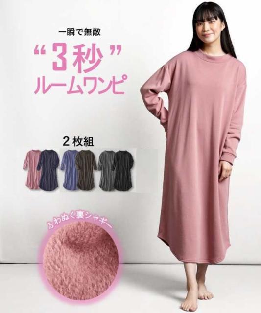 パジャマ レディース ワンピース 2枚組 長袖 綿混 ゆったり かわいい ルームウェア ルームウエア ルームワンピース ルームワンピ 2枚セッ