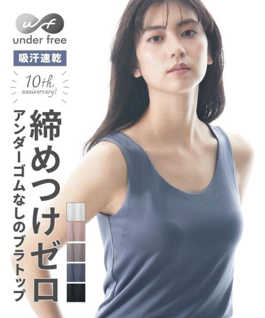 ブラトップ アンダーフリー キャミソール 綿100% S/M/L/LL ブラック/杢グレー/ホワイト UVカット 肌着 インナー 段差 ブラ ブラキャミ 締