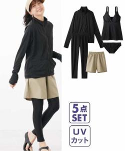 水着 レディース ラッシュガード レギンス パンツ 付 タンキニ 5点セット かわいい おしゃれ S/M/L/LL/3L ニッセン nissen